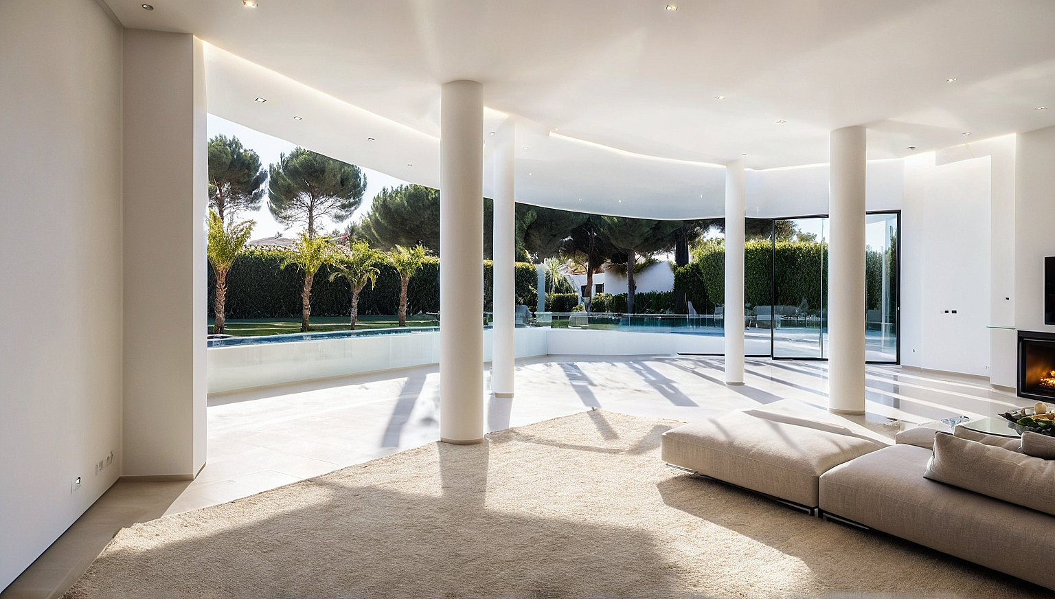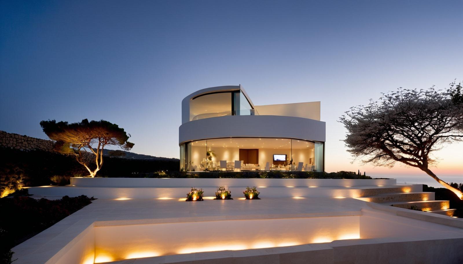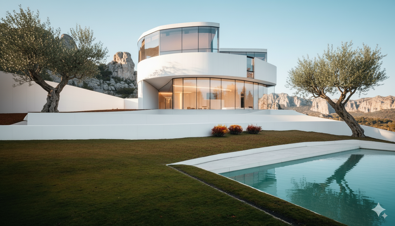 Its flowing white façade and expansive glass surfaces are designed to capture the morning light, creating warm, luminous interiors with a continuous visual connection to the surroundings. The circular layout enhances panoramic views and integrates every space with the outdoors.