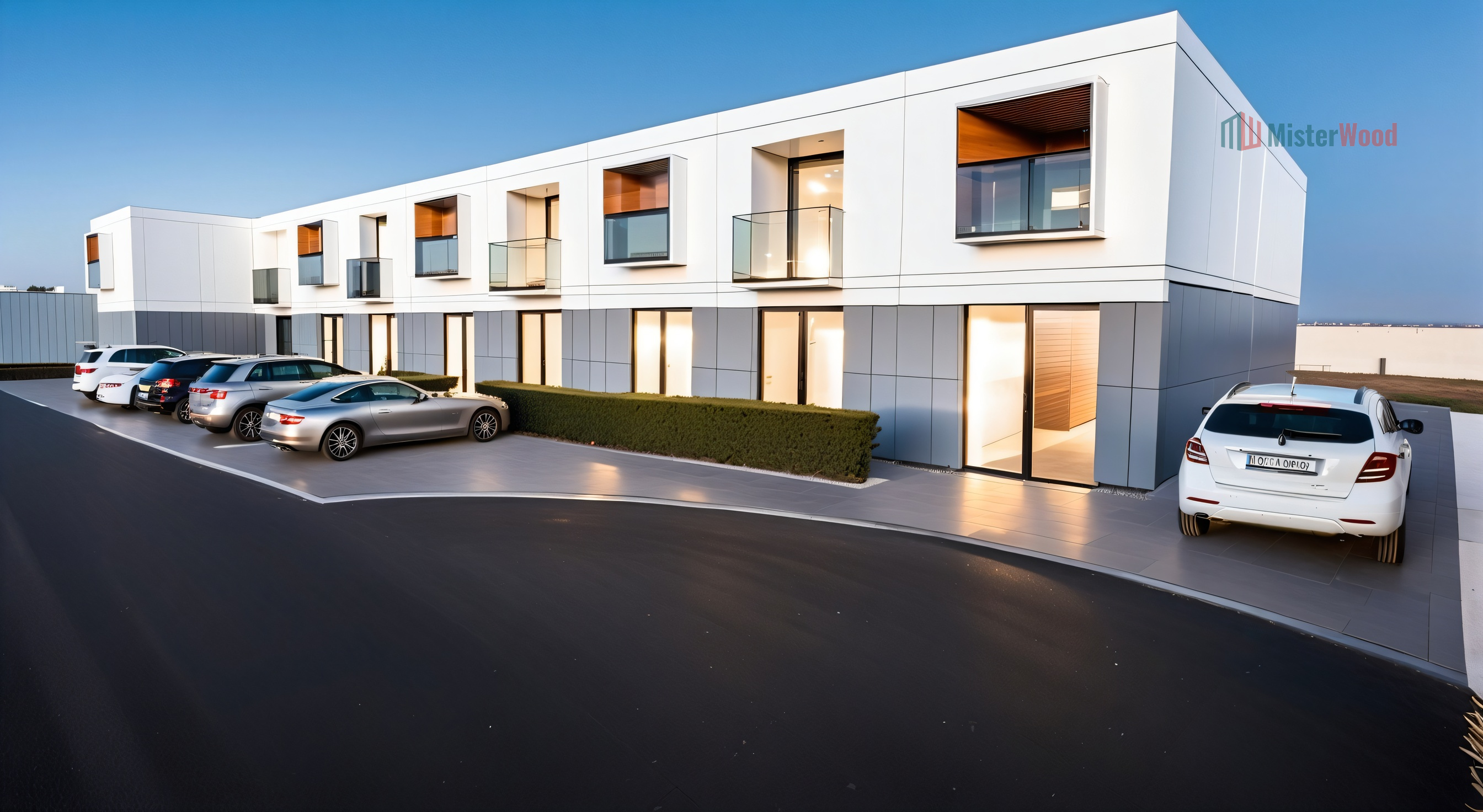 Designed for short- and mid-term rentals, the complex includes several modern and bright units with excellent energy efficiency. The use of industrialized prefabrication technology ensures a precise, sustainable and controlled building process, while the wooden structure adds warmth and outstanding thermal comfort.