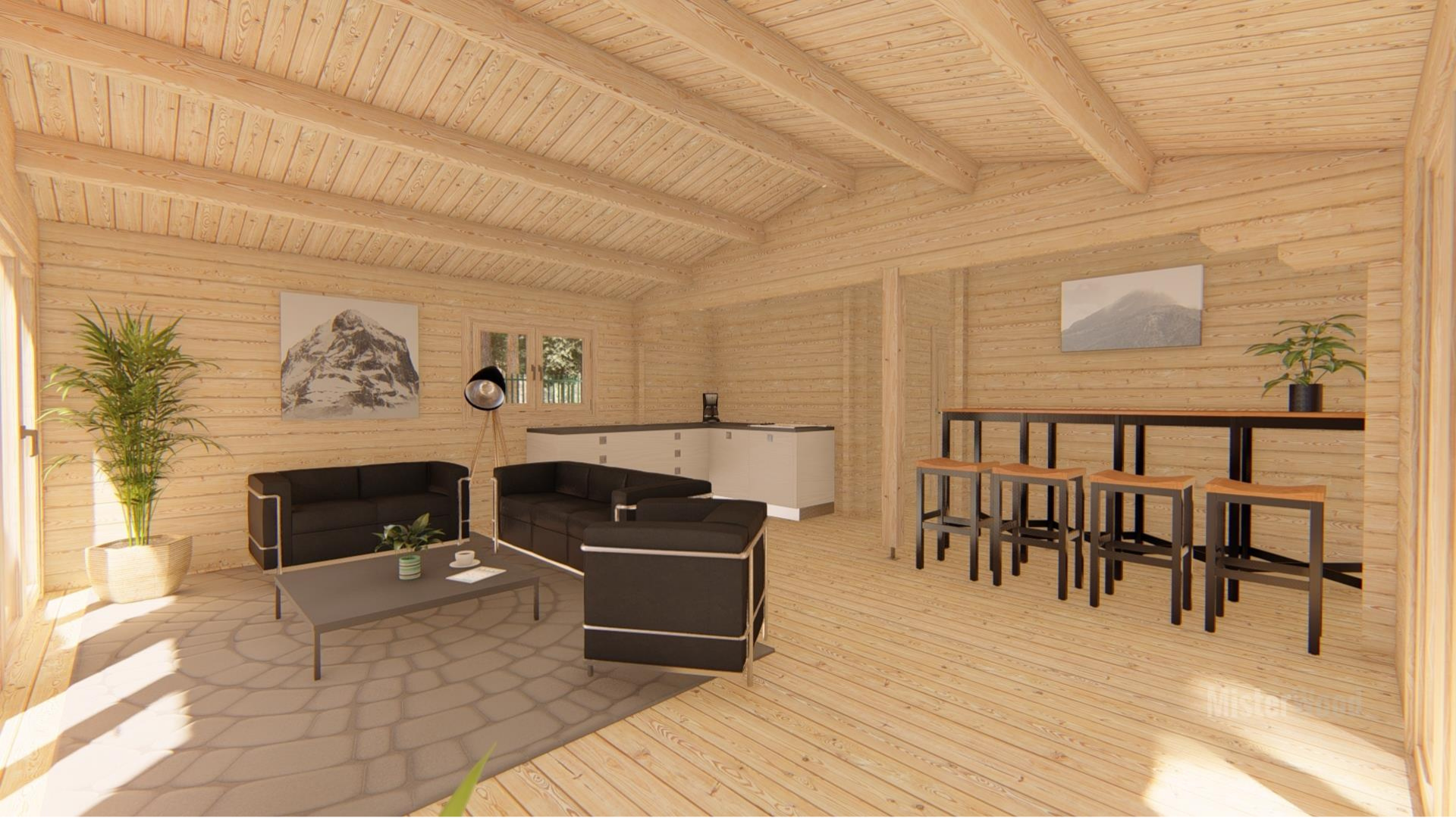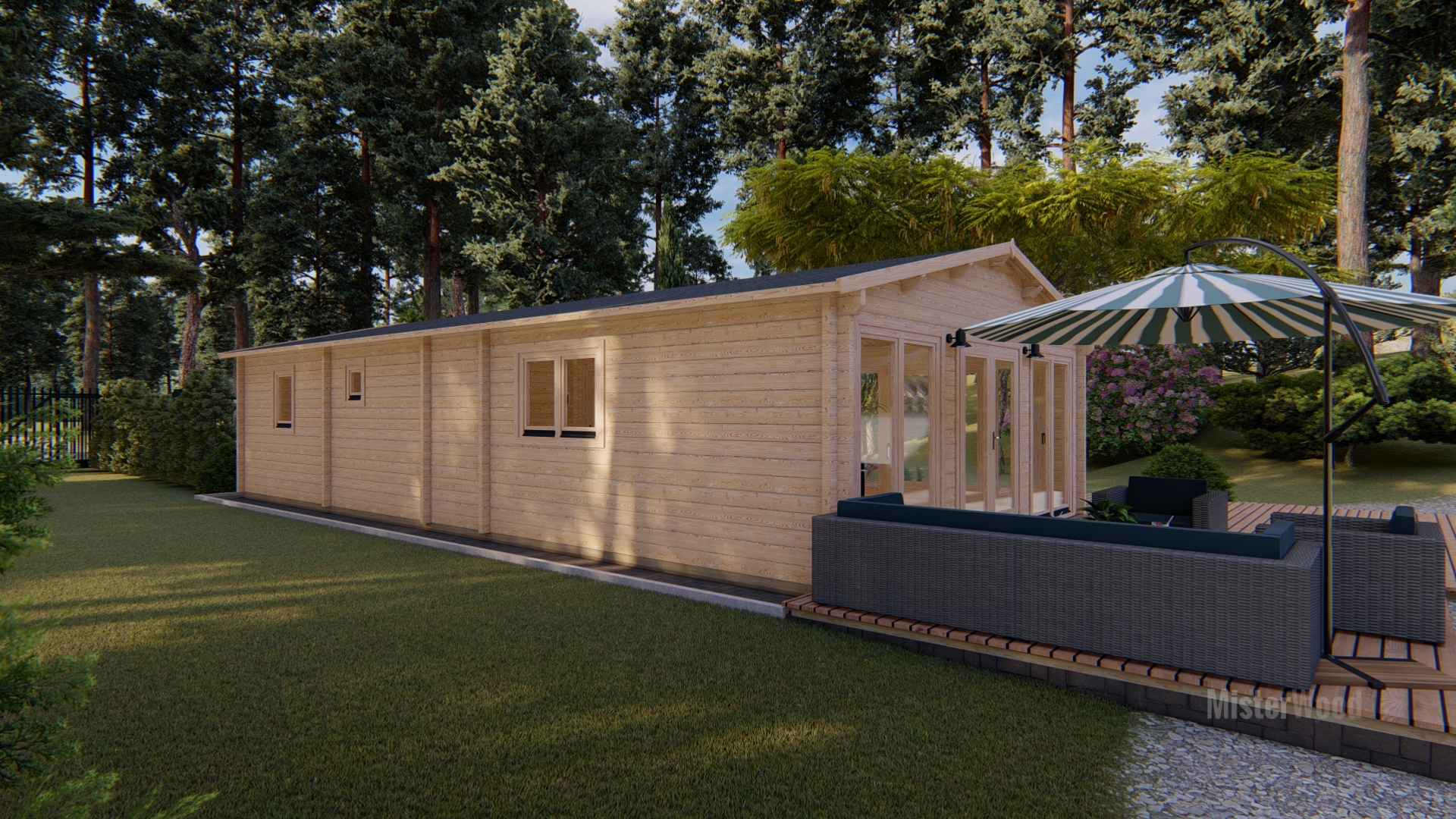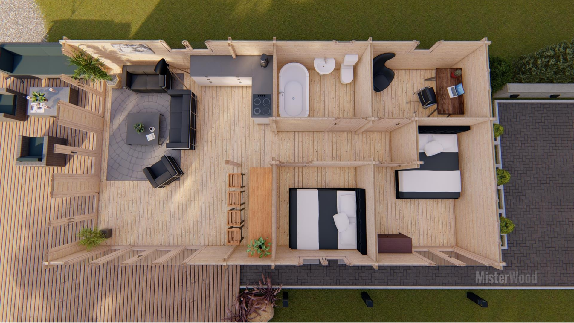 Camila es una casa de madera de 70 m² con diseño clásico rústico y techo a dos aguas. Dispone de 3 habitaciones, 1 baño, cocina y salón comedor luminoso, además de un pequeño alero que aporta encanto y funcionalidad. Todos nuestros modelos pueden hacerse completamente a medida, adaptando los metros cuadrados, la distribución, los materiales y los acabados. Diseñamos cada vivienda para que se integre perfectamente en tu parcela y se ajuste exactamente a tus necesidades.
