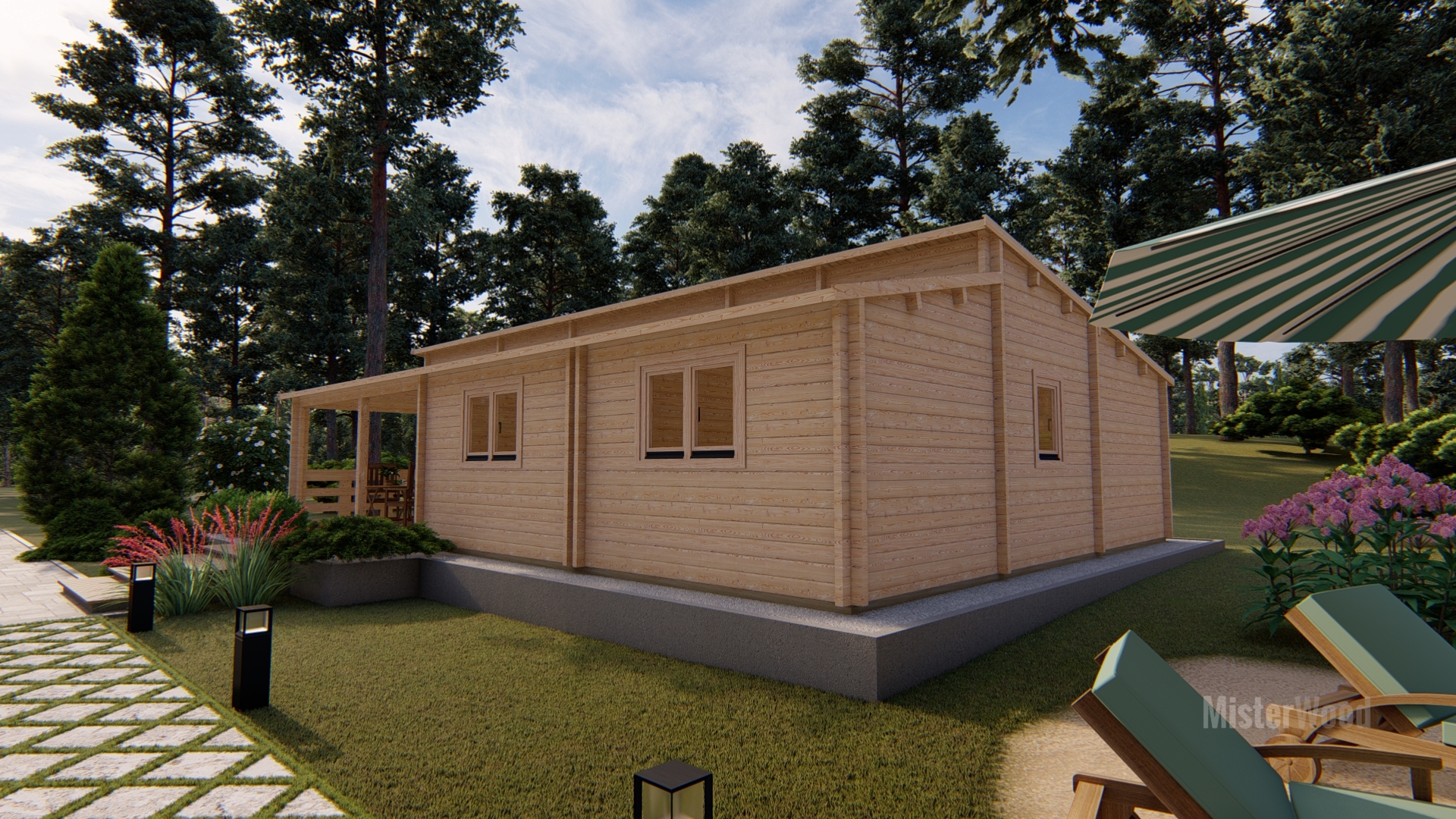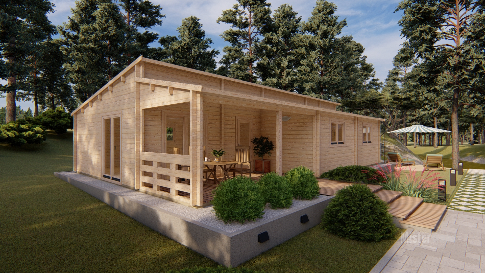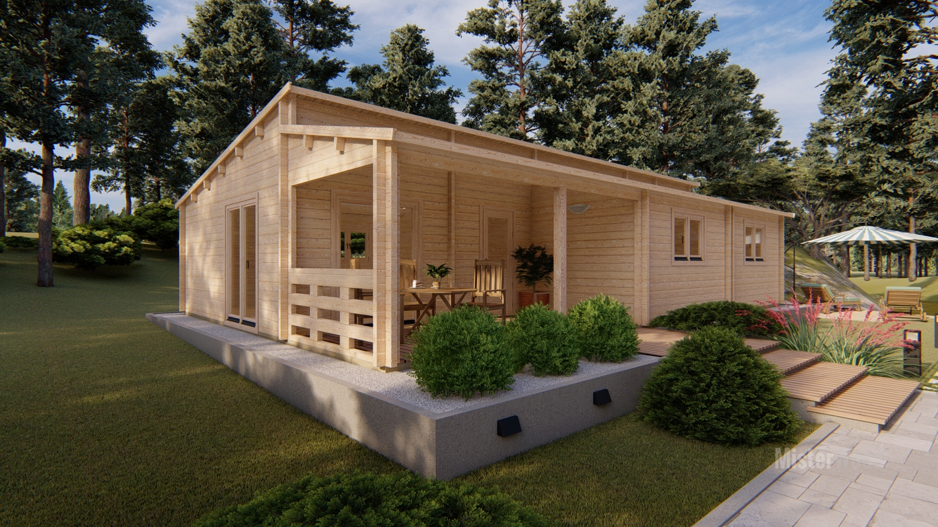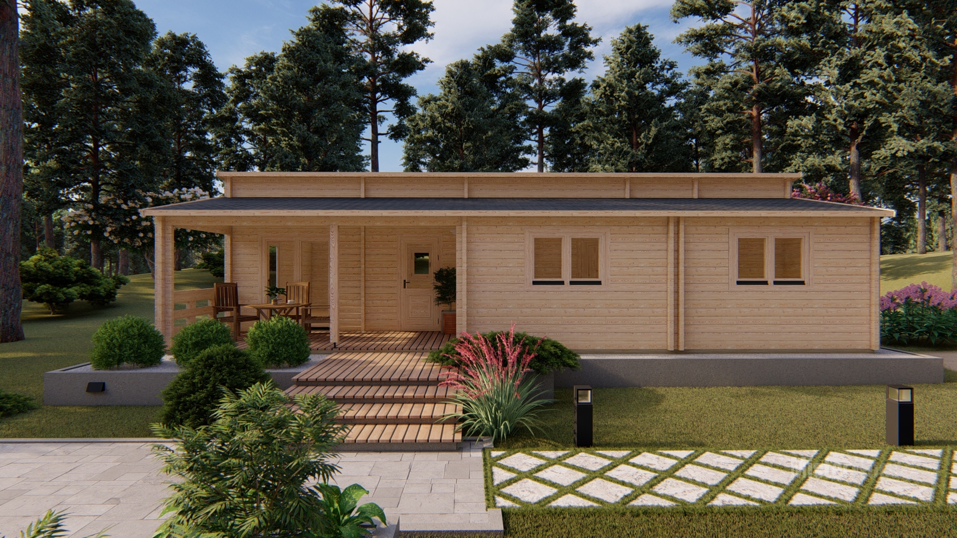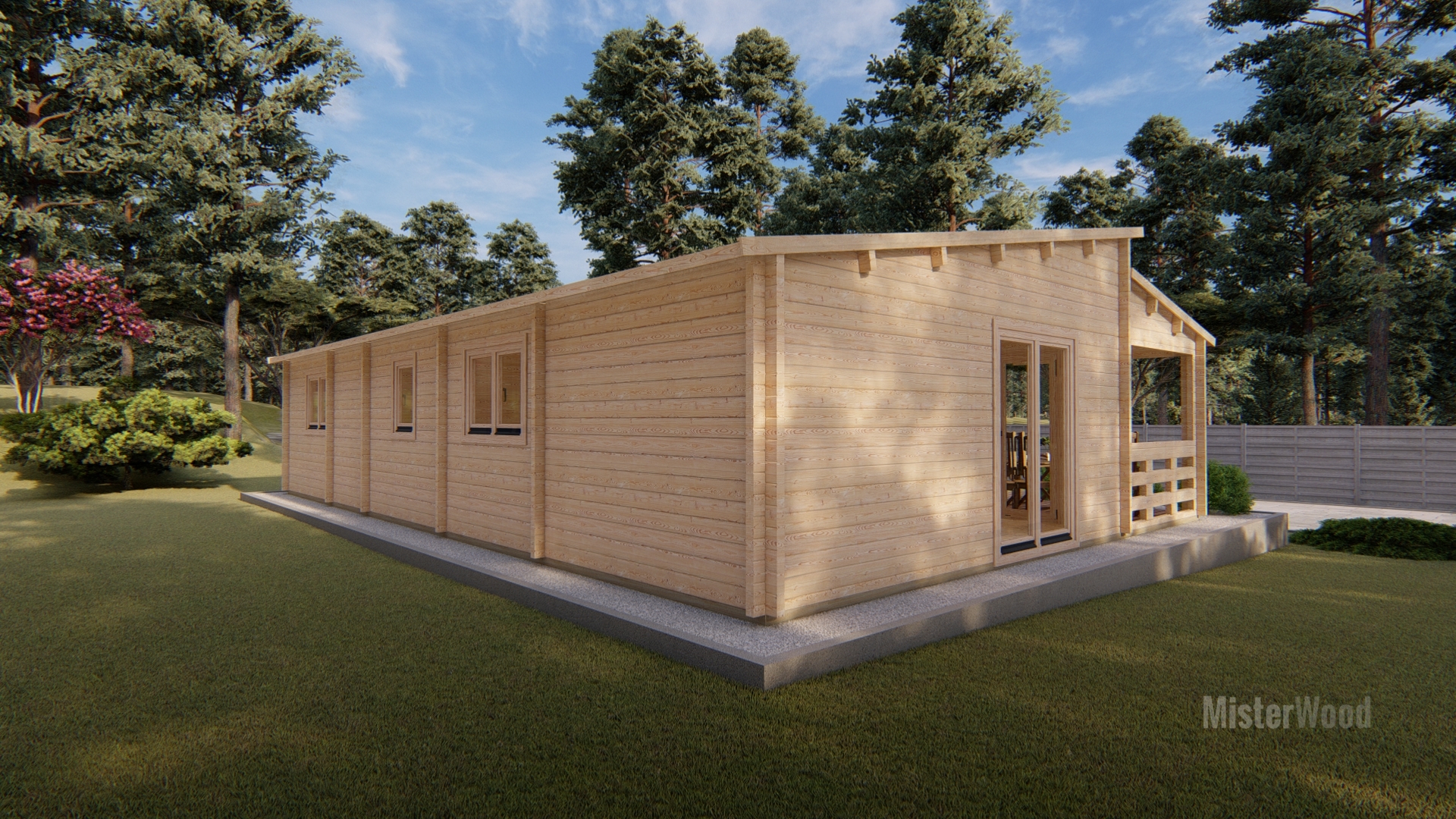 El modelo Laura es una casa de madera con un diseño moderno y funcional, con techo inclinado y porche frontal cubierto que crea un agradable espacio exterior.Con una superficie de 94 m², su interior cuenta con una distribución de 3 habitaciones, 1 baño, cocina y un amplio salón comedor muy luminoso. Todos nuestros modelos pueden hacerse completamente a medida, adaptando los metros cuadrados, la distribución, los materiales y los acabados. Diseñamos cada vivienda para que se integre perfectamente en tu parcela y se ajuste exactamente a tus necesidades.